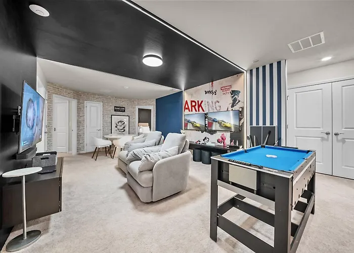 Com jacuzzi e banheira quente para uma experiência relaxante, a Brand New 10Bdrms7Bath Luxury Vila Orlando está localizada a 15 minutos de carro de Showcase of Citrus. Esta pousada dispõe de oportunidades para boliche e bilhar na área, a 6 km de West Gate Flea Market.
